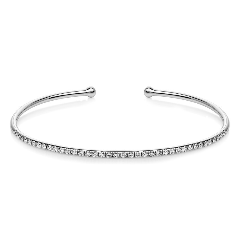 bangle 18 kt WG, 38 diamonds 0,55 ct, G-si, h:45,0 mm, w:55,0 mm, th:1,8 mm