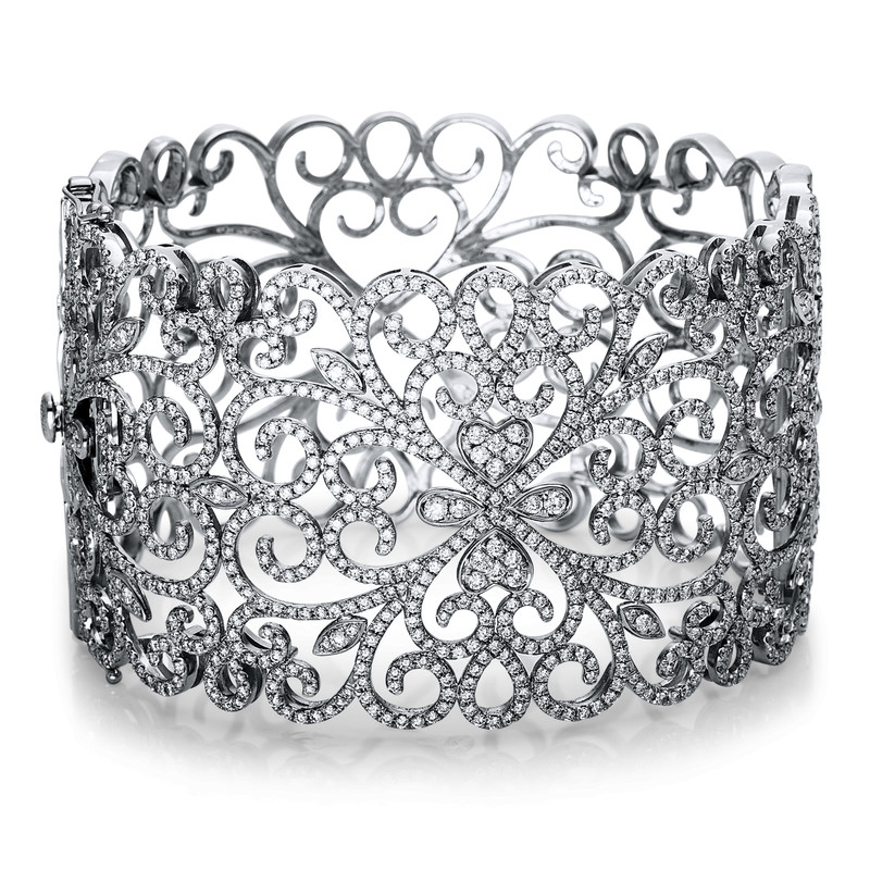 bangle 18 kt WG, 1000 diamonds 7,19 ct, G-si, h:48,0 mm, w:63,0 mm