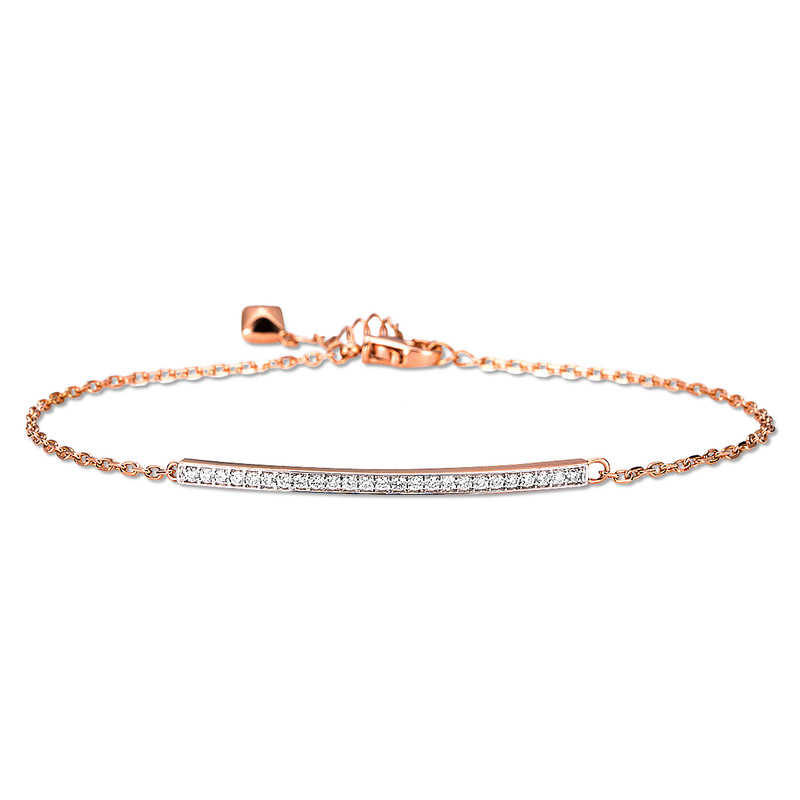 bracelet 14 kt RG, 25 diamonds 0,18 ct, G-si, l:17 cm + extension 3 cm