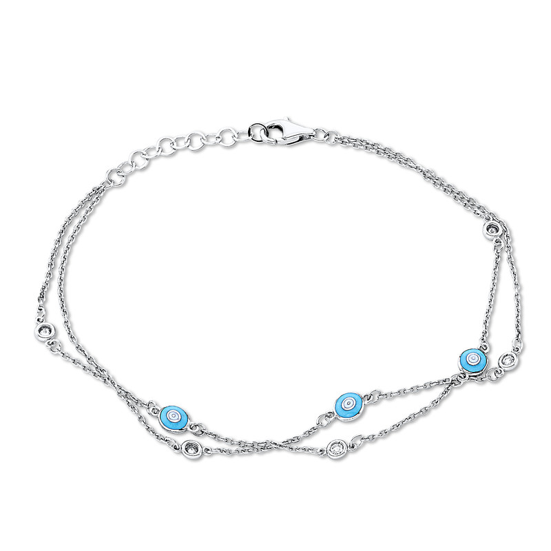 bracelet 14 kt WG, 5 diamonds 0,11 ct, G-si, l:17,5 cm