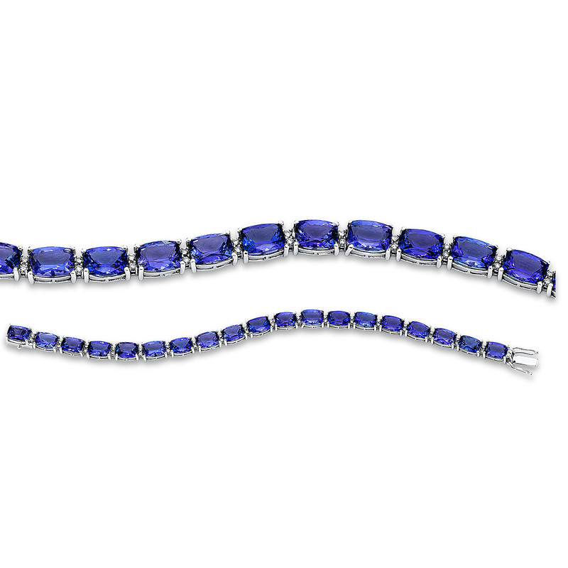 bracelet 14 kt WG, 38 diamonds 0,70 ct, G-si, 19 tanzanite 26,00 ct blue, l:18,4 cm