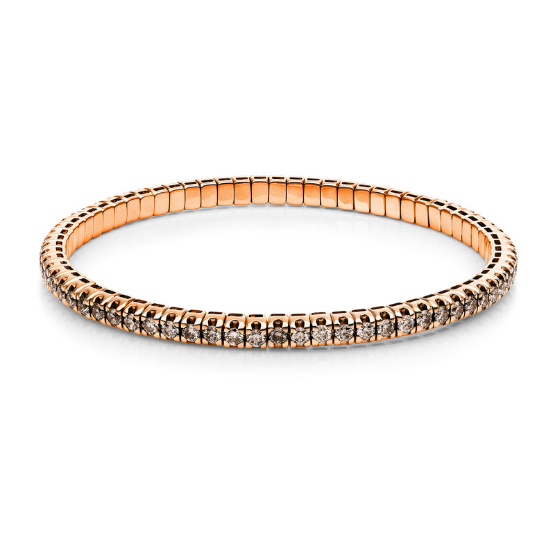 bracelet 18 kt RG, flex-band, variable, 70 diamonds 3,36 ct, brown