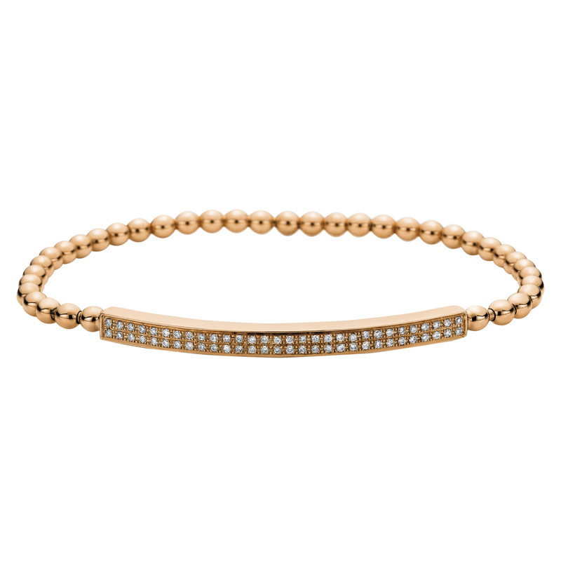 bracelet 18 kt RG, flexi band, 43 balls, 60 diamonds 0,24 ct, G-si, h:42,9 mm, w:3,6 mm, th:3,2 mm