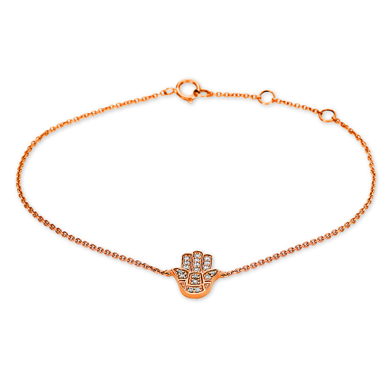 bracelet 18 kt RG "hand", 18 diamonds 0,07 ct, G-si, l:17,8 cm
