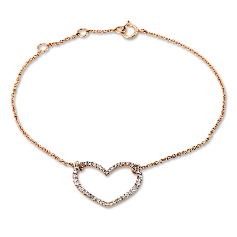 bracelet 18 kt RG "heart", 44 diamonds 0,29 ct, G-si, w:178,0 mm