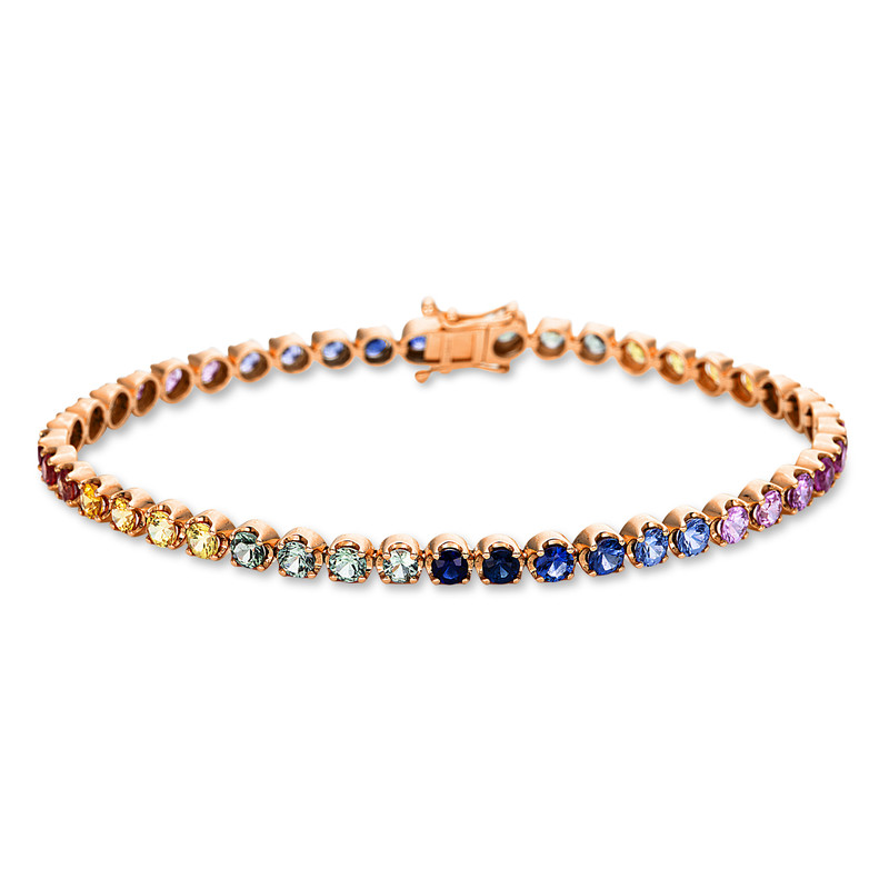 bracelet 18 kt RG, 45 sapphire 5,91 ct multicolor, w:4,0 mm, l:17,8 cm