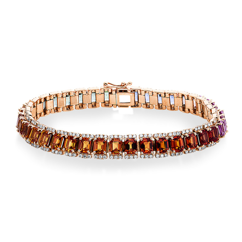bracelet 18 kt RG, 234 diamonds 1,65 ct, G-si, 39 sapphire 21,05 ct multicolor, w:9,1 mm, l:18,0 cm