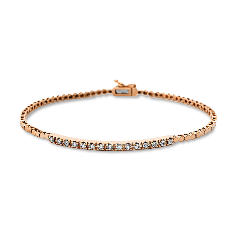 bracelet 18 kt RG, 15 diamonds 0,39 ct, G-si, l:17,5 cm