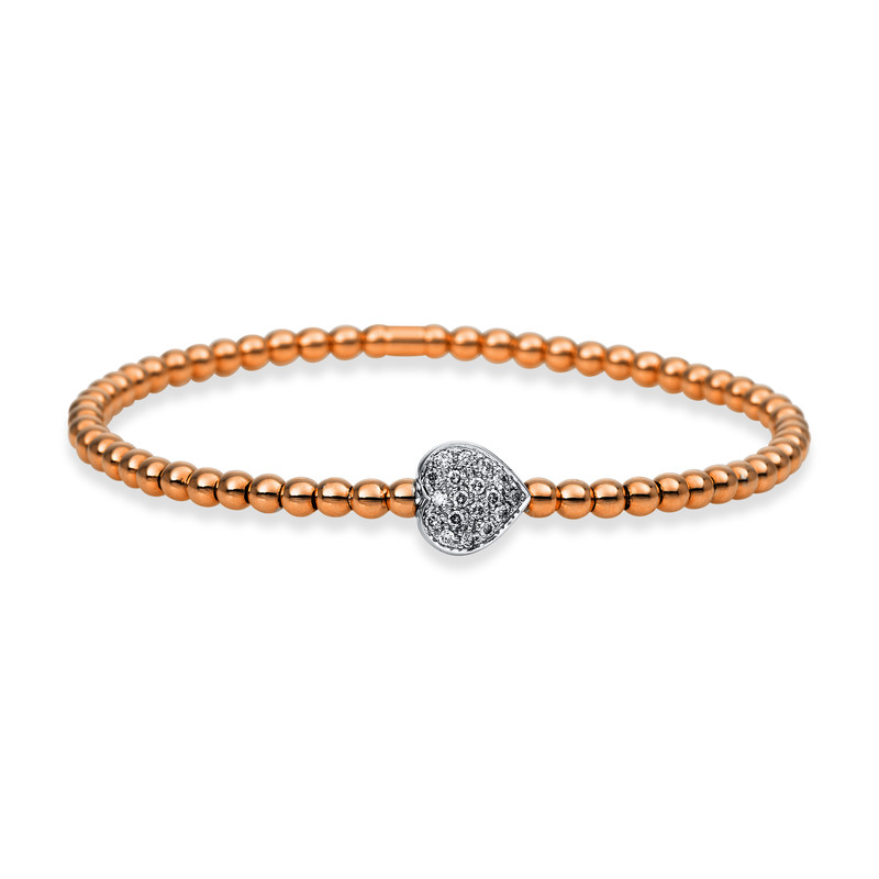 bracelet 18 kt RG+WG "heart", flex-band, 20 diamonds 0,14 ct, G-si