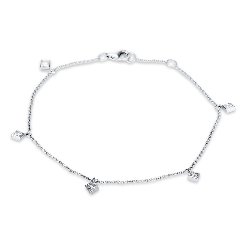 bracelet 18 kt WG, 5 princess 0,34 ct, G-si, h:5,0 mm, w:4,3 mm, l:17,8 cm