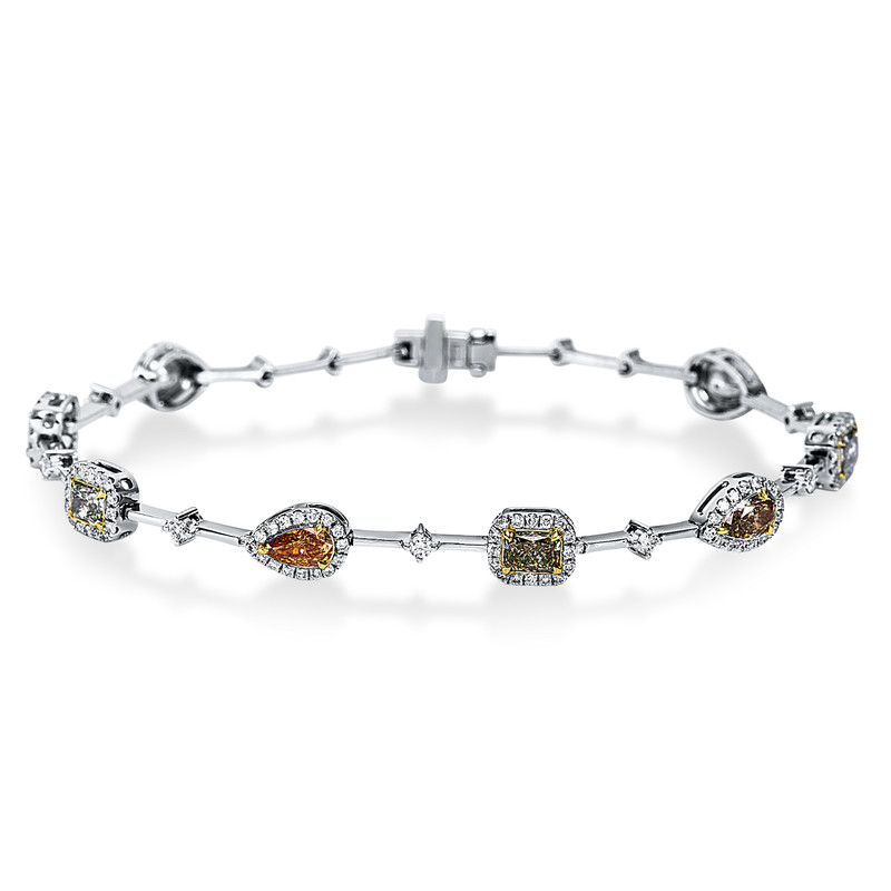 bracelet 18 kt WG, 139 diamonds 0,79 ct, G-si, 8 fanta cut 2,03 ct, fancy, l:17,0 cm