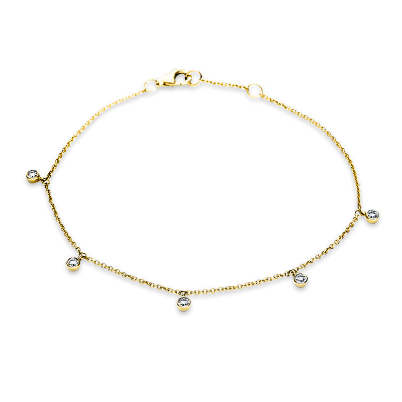 bracelet 18 kt YG, 5 diamonds 0,17 ct, G-si, l:17,8 cm, Ø:2,8 mm