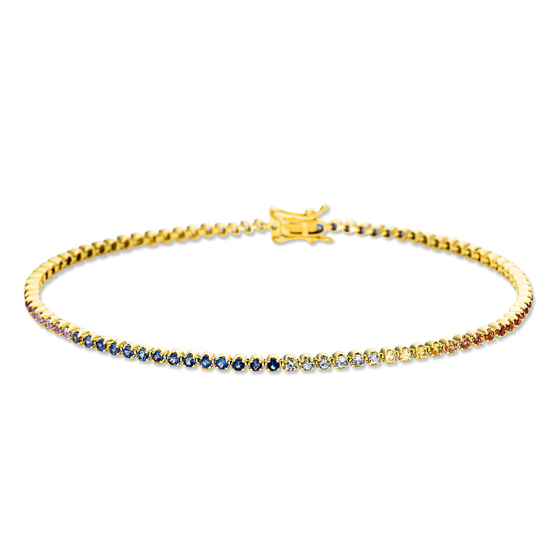 bracelet 18 kt YG, 92 sapphire 1,30 ct fancy, l:17,8 cm
