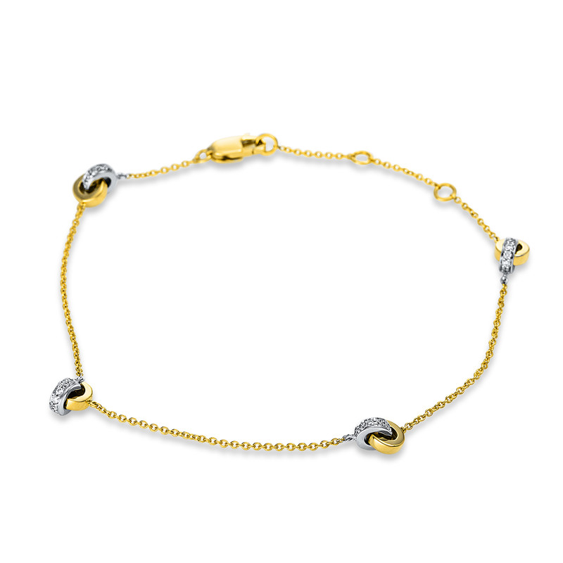 bracelet 18 kt YG+WG, 44 diamonds 0,19 ct, H-si, h:4,6 mm, w:6,1 mm, l:18,0 cm