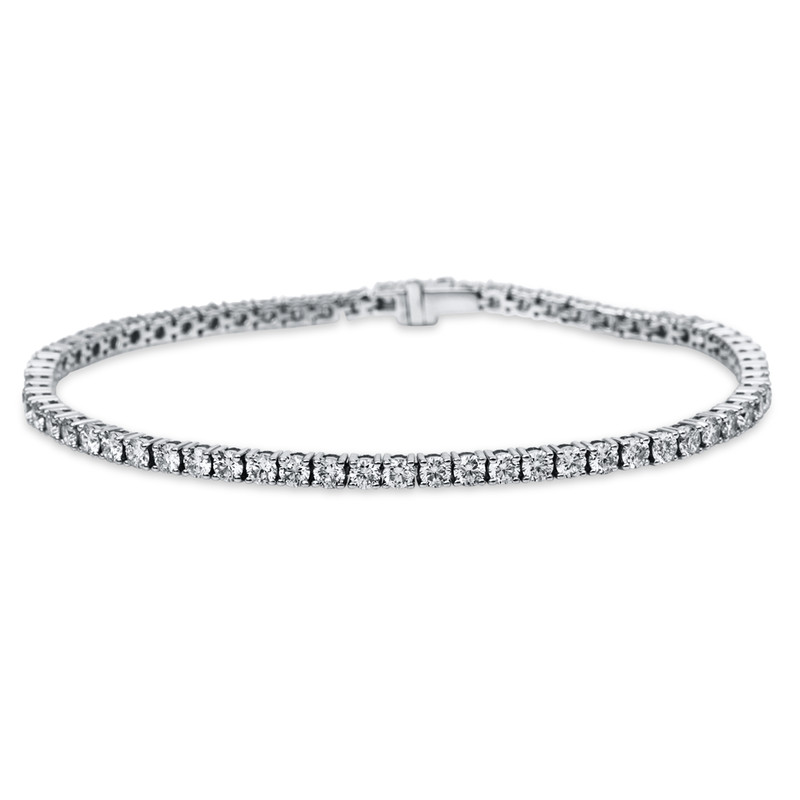 bracelet 4 prongs 18 kt WG, 64 diamonds 4,14 ct, G-si, l:17,5 cm