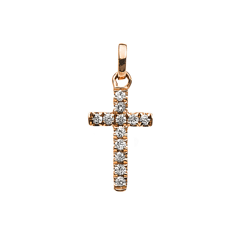 pendant 14 kt RG "cross", with loop, 12 diamonds 0,04 ct, G-si