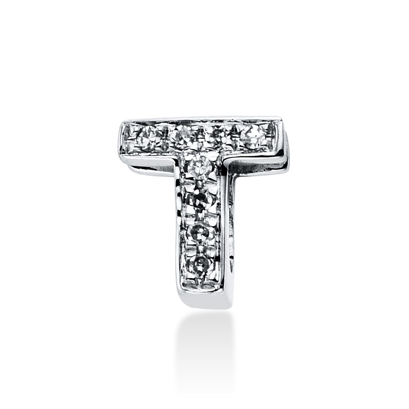 pendant 14 kt WG "T", 8 diamonds 0,02 ct, H-si