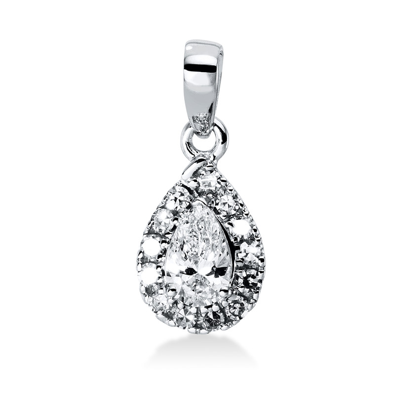 pendant 14 kt WG, with loop, 1 pear 0,21 ct, G-si, 13 diamonds 0,11 ct, G-si