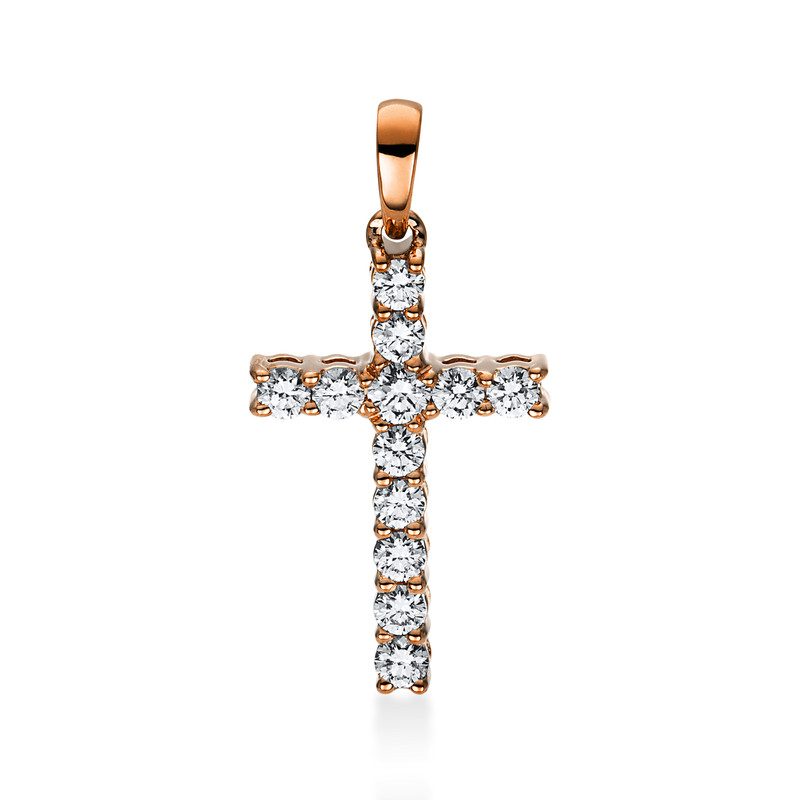 pendant 18 kt RG "cross", with loop, 1 diamond 0,04 ct, G-si, 11 diamonds 0,22 ct, G-si