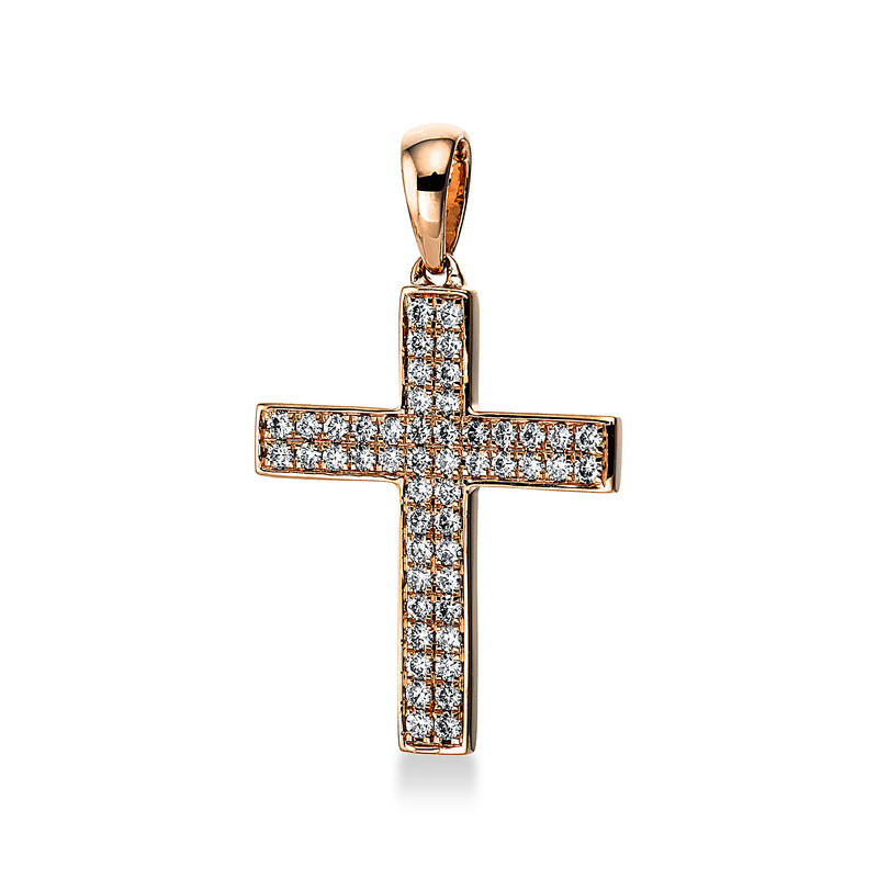 pendant 18 kt RG "cross", with loop, 50 diamonds 0,31 ct, G-si