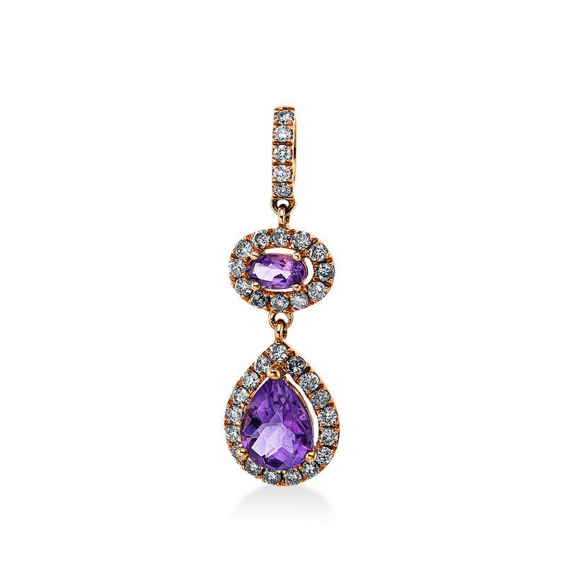 pendant 18 kt RG, with loop, 34 diamonds 0,55 ct, I-si, 2 amethysts 1,10 ct lilac