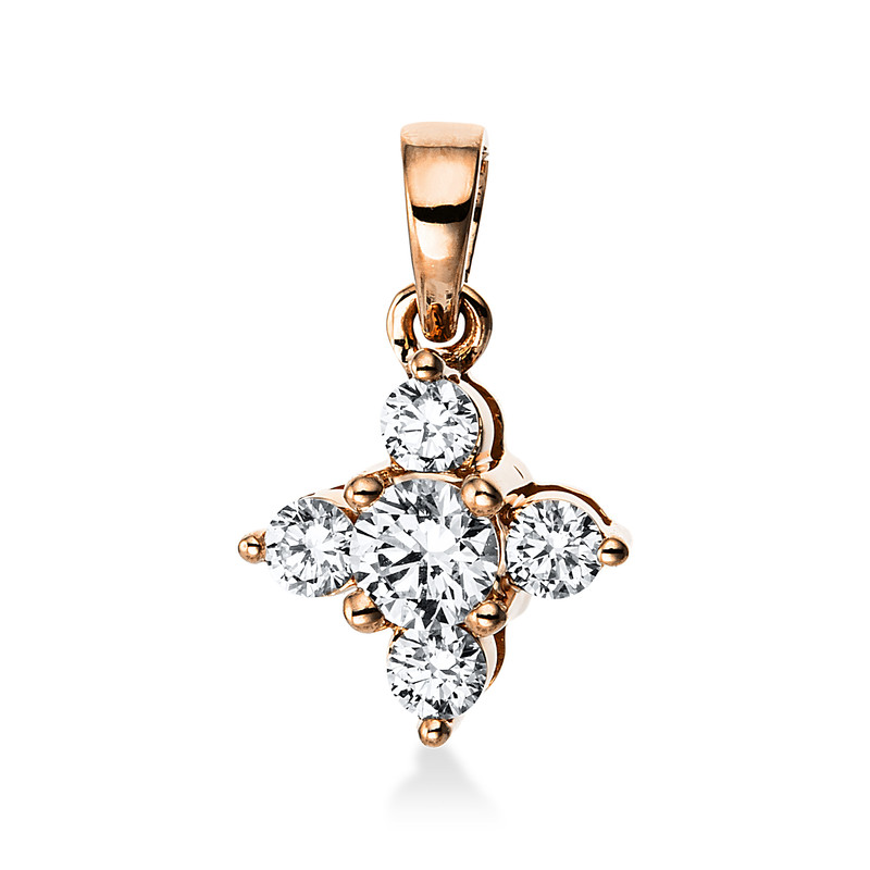 pendant 18 kt RG, with loop, 1 diamond 0,09 ct, G-si, 4 diamonds 0,11 ct, G-si