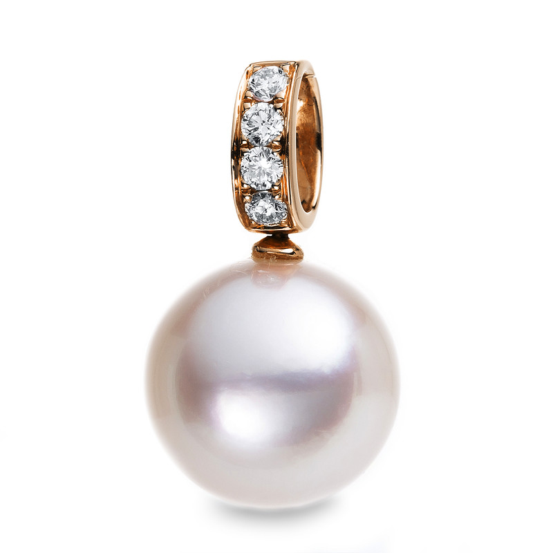 pendant 18 kt RG, 4 diamonds 0,17 ct, H-si, 1 SS white 12,5 mm