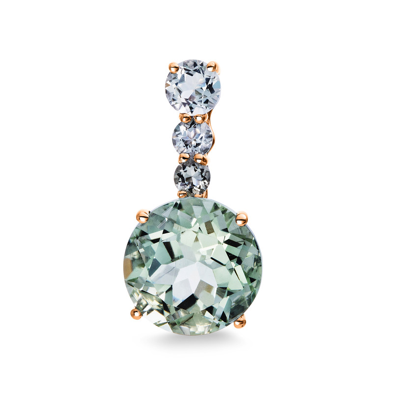 pendant 18 kt RG, 1 amethyst 3,40 ct green, 3 amethysts 0,45 ct green