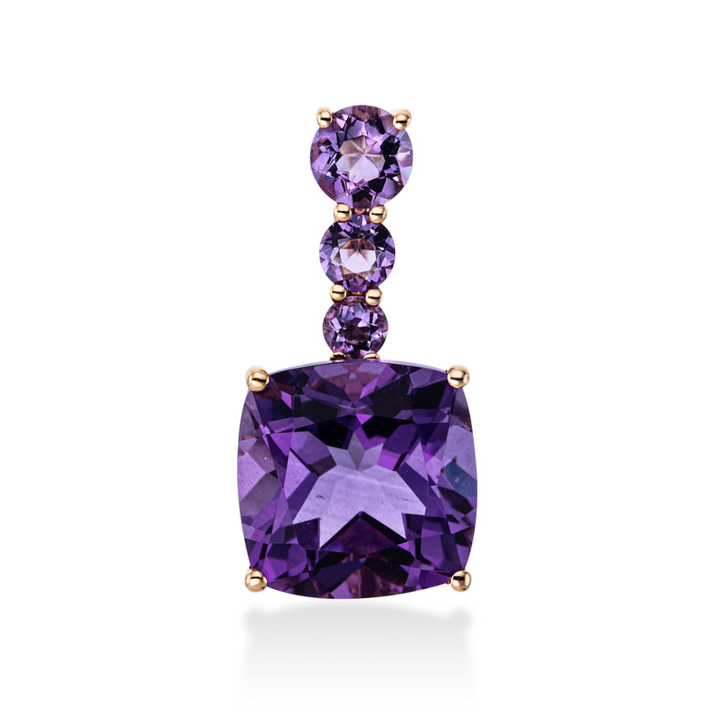 pendant 18 kt RG, 1 amethyst 3,00 ct lilac, 3 amethysts 0,45 ct lilac