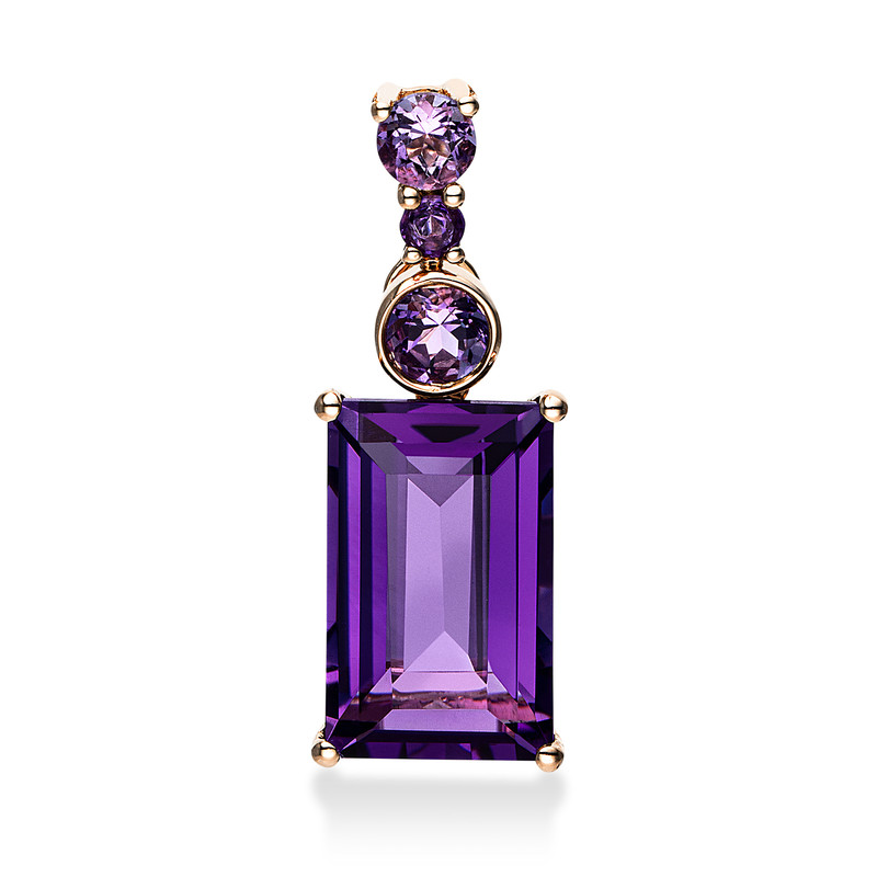 pendant 18 kt RG, 1 amethyst 3,30 ct, 3 amethysts 0,30 ct, h:20,8 mm, w:7,7 mm