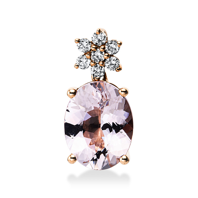 pendant 18 kt RG, 7 diamonds 0,10 ct, G-si, 1 morganite 1,58 ct pink