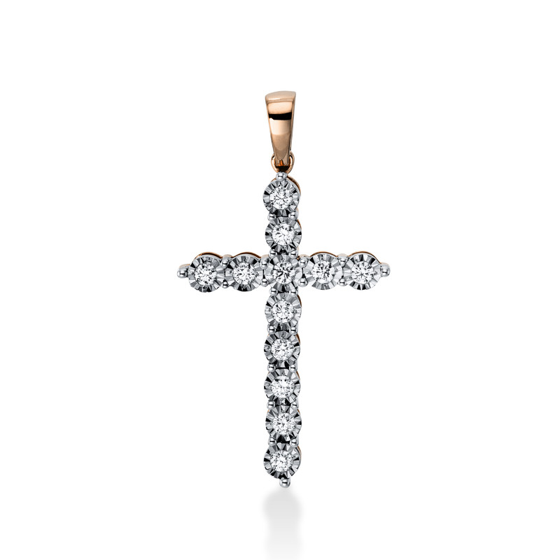 pendant 18 kt RG+WG "cross", with loop, 12 diamonds 0,24 ct, G-si, h:30,4 mm, w:15,8 mm