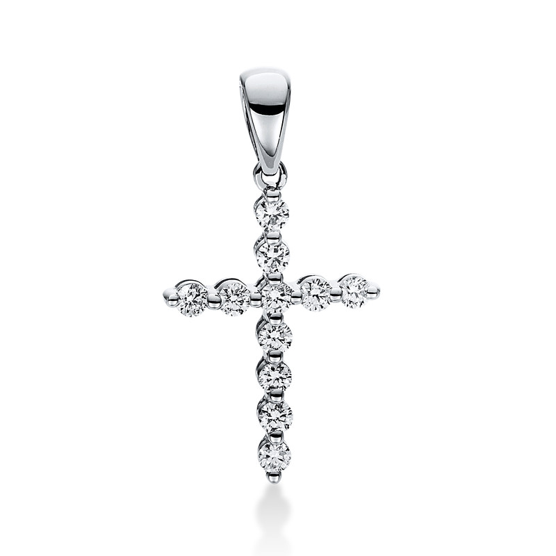 pendant 18 kt WG "cross", with loop, 11 diamonds 0,32 ct, G-si, h:17,9 mm, w:12,9 mm