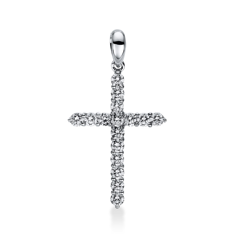 pendant 18 kt WG "cross", with loop, 16 diamonds 0,69 ct, G-si, h:23,1 mm, w:16,2 mm