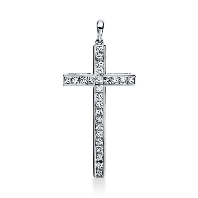 pendant 18 kt WG "cross", with loop, 25 princess 1,08 ct, G-si