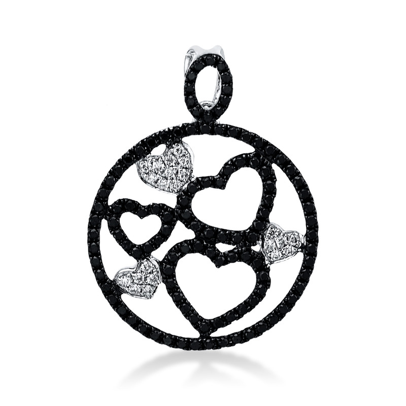 pendant 18 kt WG "heart", black rhodium plated, 22 diamonds 0,09 ct, H-si, 111 diamonds 0,47 ct, black, h:25,3 mm, Ø:19,3 mm