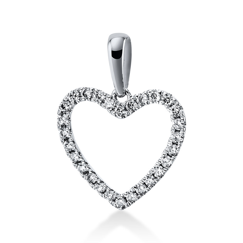 pendant 18 kt WG "heart", with loop, 28 diamonds 0,15 ct, G-si