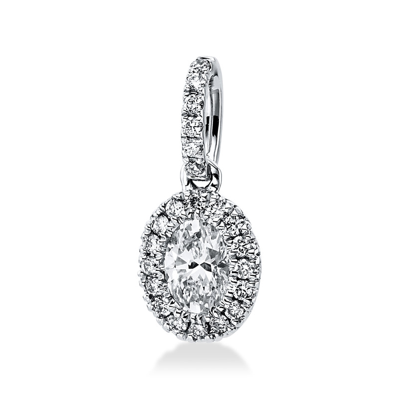 pendant 18 kt WG, with loop, 1 oval 0,30 ct, G-vsi, 22 diamonds 0,10 ct, G-vsi, h:14,6 mm, w:6,6 mm