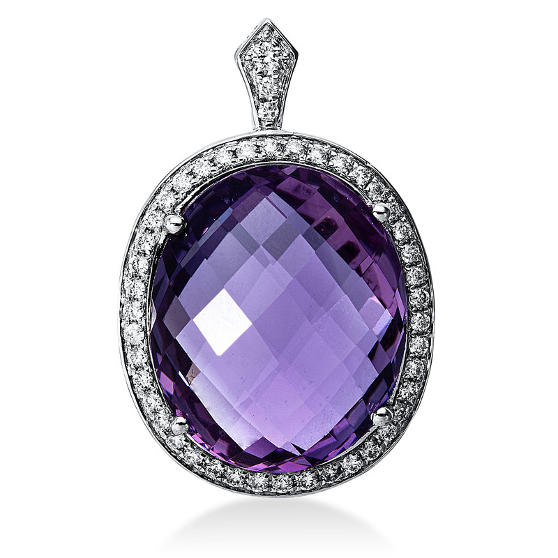 pendant 18 kt WG, 45 diamonds 0,37 ct, G-si, 1 amethyst 16,50 ct lilac