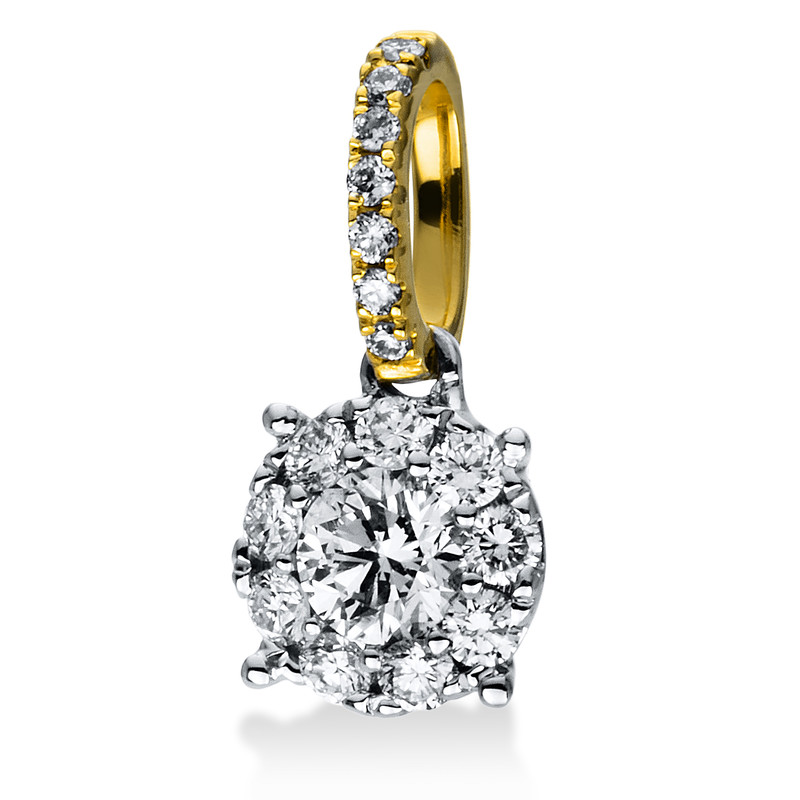 pendant 18 kt WG+YG, with loop, 1 diamond 0,12 ct, G-vsi, 16 diamonds 0,12 ct, G-vsi