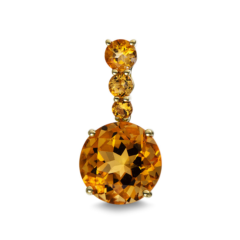 pendant 18 kt YG, 1 citrine 3,70 ct yellow, 3 citrine 0,45 ct yellow, h:20,3 mm, w:10,3 mm