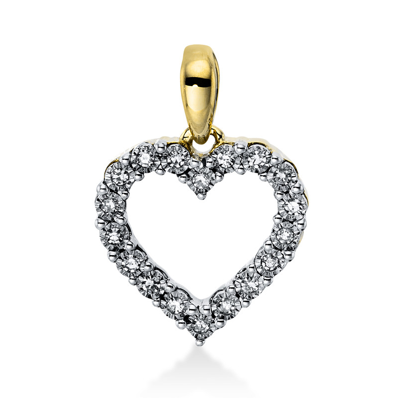 pendant 18 kt YG+WG "heart", with loop, 18 diamonds 0,06 ct, G-si, h:1,7 mm, w:11,4 mm, th:2,2 mm