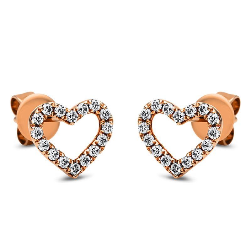 earrings 14 kt RG "heart", 32 diamonds 0,21 ct, G-si, h:6,9 mm, w:8,5 mm