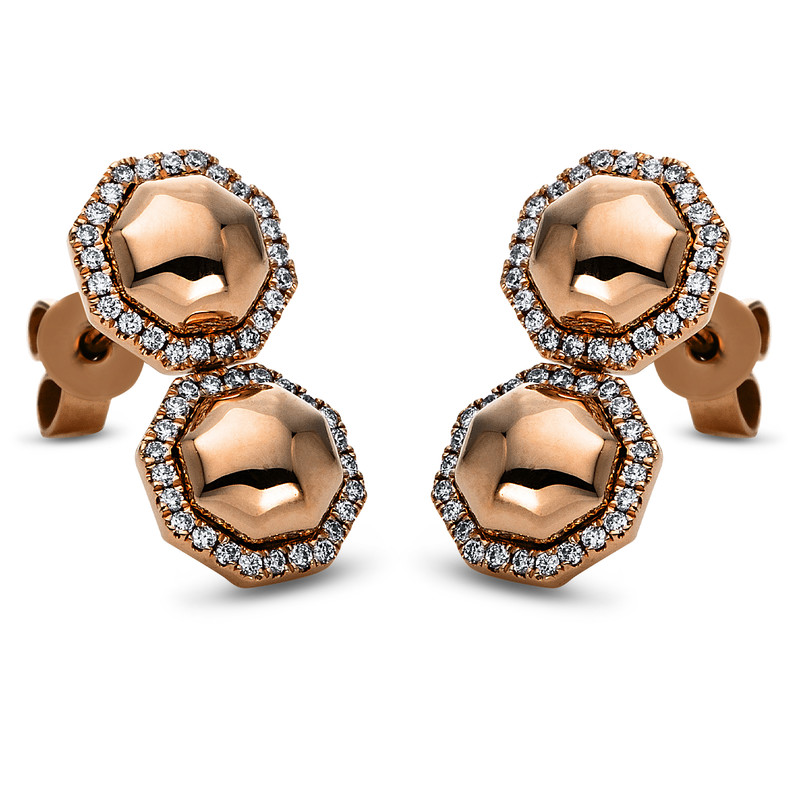earrings 14 kt RG, 96 diamonds 0,25 ct, G-si, h:15,8 mm, w:7,8 mm