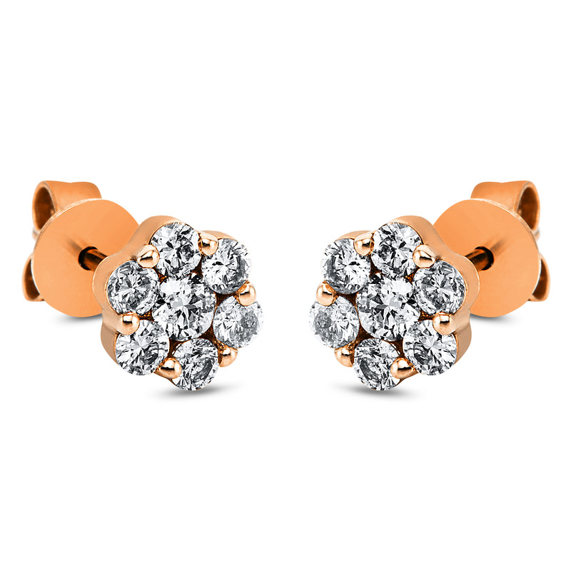 earrings 14 kt RG, 2 diamonds 0,12 ct, G-si, 12 diamonds 0,40 ct, G-si