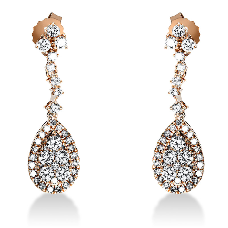 earrings 14 kt RG, 12 diamonds 0,49 ct, G-si, 52 diamonds 0,25 ct, G-si, 28 diamonds 0,27 ct, G-si