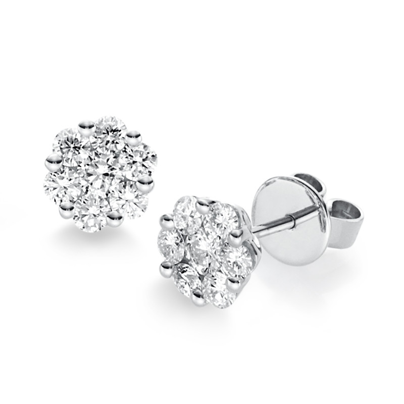 earrings 14 kt WG, 2 diamonds 0,28 ct, G-si, 12 diamonds 0,76 ct, G-si