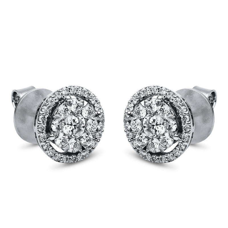 earrings 14 kt WG, 2 diamonds 0,20 ct, G-si, 50 diamonds 0,63 ct, G-si, Ø:9,3 mm