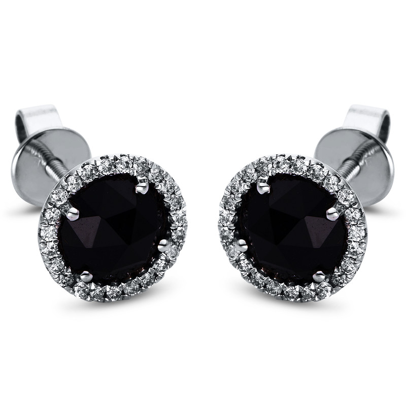 earrings 14 kt WG, 46 diamonds 0,14 ct, G-si, 2 onyx 0,81 ct black