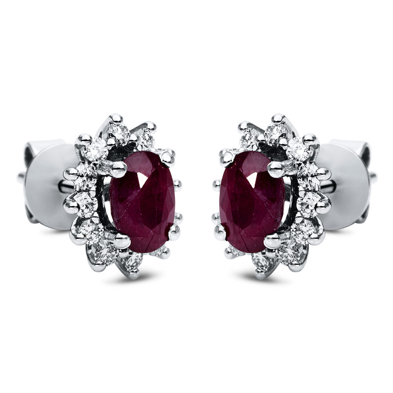 earrings 14 kt WG, 24 diamonds 0,35 ct, G-vsi, 2 rubies 1,64 ct red